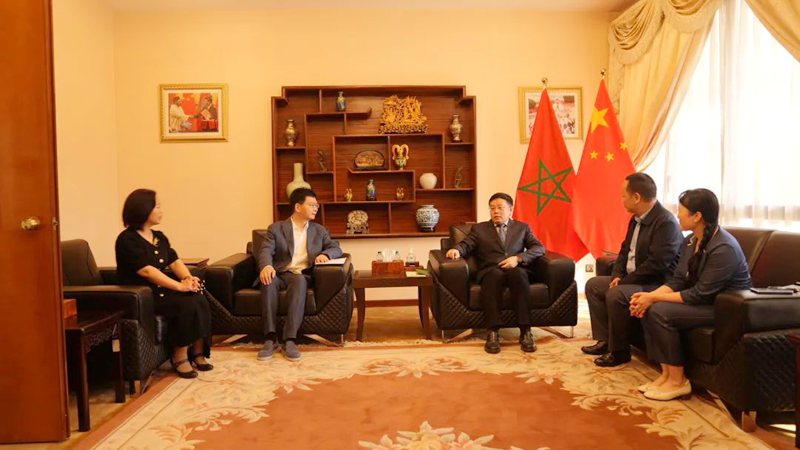 拉巴特国际书展期间,湖南展团一行赴中国驻摩洛哥大使馆拜会中国驻摩洛哥大使李昌林,并就摩洛哥历史人文特点与中国文化结合思考,以及中非经贸合作等事宜进行座谈交流。