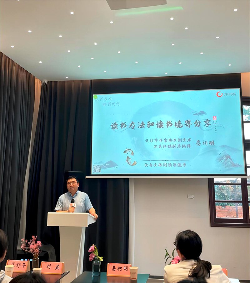 5月27日,天舟文化“以书为友 伴我同行”阅读漂流季活动在长沙橘子洲头乐之书店隆重举行。本次活动由多盈在线官网登录主办,长沙市文创协会秘书长罗璐,市文创协会会员部部长朱含笑出席活动,长沙市作协副主席、芒果超媒副总编辑易柯明作为特别嘉宾应邀带来读书分享演讲。活动包含名家讲座、活动颁奖、阅读分享、现场互动及员工生日会等精彩环节,天舟文化50余名员工参加了本次活动。