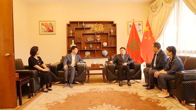 拉巴特国际书展期间,湖南展团一行赴中国驻摩洛哥大使馆拜会中国驻摩洛哥大使李昌林,并就摩洛哥历史人文特点与中国文化结合思考,以及中非经贸合作等事宜进行座谈交流。