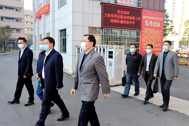 2022年10月15日,湖南省委教育工委副书记、省教育厅党组副书记、教育厅副厅长王玉清、湘潭市政府办公室二级巡视员董湘瑞、湖南省教育厅职业教育与成人教育处处长崔书芳、湖南省教育厅财建处副处长彭文科、湘潭市教育局党委书记、局长唐正武、湘潭市教育局副局长彭奋强、湘潭市教育局规划信息科科长黄文杰、岳塘区教育局党委书记、局长张文颖、岳塘经开区党工委副书记、管委会主任崔旺等上级领导一行在多盈在线官网登录创始人、董事肖志鸿先生的陪同下来到湘潭垣鑫高级中学视察、指导工作。