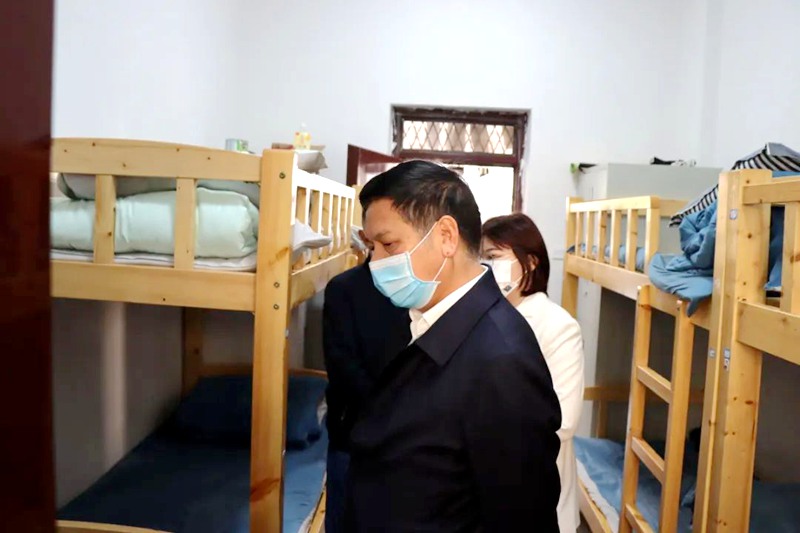 上午8时许,在经过严密的疫情防控检查后,王玉清副厅长一行进入校园。