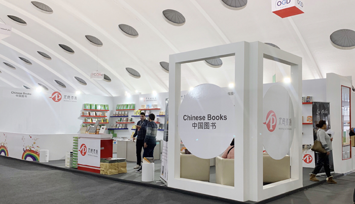 中国展区是本届书展中面积最大的展区之一。此次书展,人民天舟为当地读者准备了一百余种、六千余册阿语、法语、英语精品图书,重点展出了新近出版的《平“语”近人——习近平总书记用典》阿语版等主题图书;同时还根据当地少儿读者的需要,展出了《我要飞》(阿语版)、《米莉茉莉和莉莉成长故事》系列(英语版)、科普绘本《漫画十万个为什么》系列(法语版)等一大批优秀少儿图书,以及反映中国传统文化的《我心中的少林》(英语版)、《少林功夫》(英语版)等书籍、具有中国特色的文创产品等。中国展台很受读者喜爱,每天都有众多读者在展台翻阅与购买相关图书。